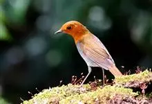 日本歌鸲:体型小似麻雀,但羽毛颜色较为美丽。嘴细长,嘴须不发达;翅短圆,上体草黄褐;雄鸟喉部橙棕色,十分明显,雌鸟却转为淡橙黄色。第一枚初级飞羽短狭;尾长约为跗蹠长度的二倍;跗蹠黑褐色,形粗长而健。…全部>>