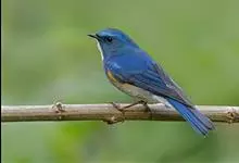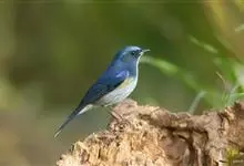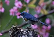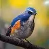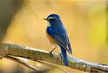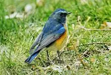 红胁蓝尾鸲俗名:蓝点冈子、蓝尾巴根子、蓝尾杰、蓝尾欧鸲。体型略小而喉白的鸲。特征为橘黄色两胁与白色腹部及臀成对比。雄鸟上体蓝色,眉纹白;亚成鸟及雌鸟褐色,尾蓝。…全部>>
