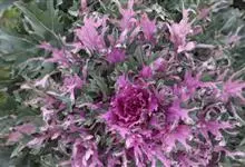 羽衣甘蓝,又名叶牡丹、牡丹菜、海甘蓝等,是十字花科芸薹属野甘蓝的一个园艺变种,属二年生草本植物。羽衣甘蓝主根不发达,须根较多。茎直立,肉质,有分枝或无分枝。叶皱缩,呈白黄、黄绿、粉红或红紫等色,…全部>>