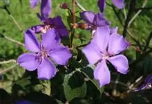 野牡丹:灌木,高0.5-1.5米,分枝多;茎钝四棱形或近圆柱形,毛扁平边缘流苏状。叶片坚纸质,卵形或广卵形,全缘,7基出脉,两面被糙伏毛及短柔毛。伞房花序生于分枝顶端,近头状,…全部>>