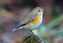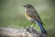 红胁蓝尾鸲俗名:蓝点冈子、蓝尾巴根子、蓝尾杰、蓝尾欧鸲。体型略小而喉白的鸲。特征为橘黄色两胁与白色腹部及臀成对比。雄鸟上体蓝色,眉纹白;亚成鸟及雌鸟褐色,尾蓝。…全部>>