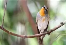 红喉姬鹟小型鸟类,体长11~13厘米。雄鸟上体灰黄褐色,眼先、眼周白色,尾上覆羽和中央尾羽黑褐色,外侧尾羽褐色,基部白色。颏、喉繁殖期间橙红色,胸淡灰色,其余下体白色,非繁殖期颏、喉变为白色。…全部>>