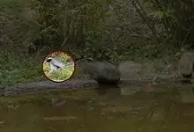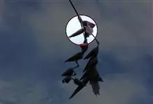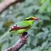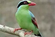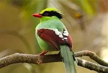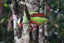 蓝绿鹊:中型鸟类,共有5个亚种。体长36-38厘米。尾长,嘴、脚红色。通体羽色主要为草绿色,宽阔的黑色贯眼纹向后延伸到后颈,在绿色的头侧极为醒目。两翅栗红色,内侧飞羽具黑色次端斑和白色尖端。尾绿色,…全部>>