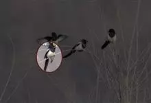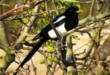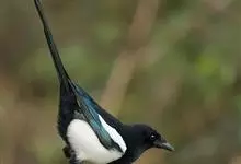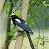 喜鹊:是鸦科、鹊属的一种鸟类。共有11个亚种。体长40-50厘米,雌雄羽色相似,头、颈、背至尾均为黑色,并自前往后分别呈现紫色、绿蓝色、绿色等光泽,双翅黑色而在翼肩有一大形白斑,尾远较翅长,呈楔形,…全部>>