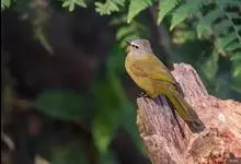 黄绿鹎,小型鸟类,体长19-22厘米。额至头顶暗褐具灰色羽缘,眼先黑色,其上面有一粗著的白纹从鼻后至眼,在黑色的头部极为醒目。上体橄榄绿褐色。颏、喉淡灰色或灰白色,胸灰褐色具橄榄黄色羽缘,…全部>>
