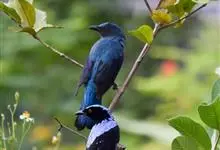 和平鸟中型鸟类,体长24~28厘米。眼红色,嘴、脚黑色。雄鸟从头顶到尾上覆羽等整个上体辉蓝色具紫色光泽,其余体羽黑色。雌鸟通体铜蓝色,仅飞羽黑褐色。常见的低地留鸟,…全部>>