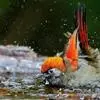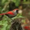 赤尾噪鹛中型鸟类,体长24~28厘米。头顶至后颈红棕色,两翅和尾鲜红色,眼先、眉纹、颊、颏和喉黑色,眼后有一灰色块斑。其余上下体羽大都暗灰或橄榄灰色。特征极明显,特别是通过鲜红色的头顶、翅和尾。…全部>>