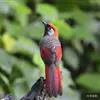 赤尾噪鹛中型鸟类,体长24~28厘米。头顶至后颈红棕色,两翅和尾鲜红色,眼先、眉纹、颊、颏和喉黑色,眼后有一灰色块斑。其余上下体羽大都暗灰或橄榄灰色。特征极明显,特别是通过鲜红色的头顶、翅和尾。…全部>>