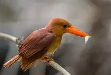 赤翡翠:是佛法僧目翠鸟科的鸟类。共有10个亚种。体长25-27厘米,体重76-77 克。头、颈、背、腰尾上覆羽、尾羽棕赤色,是翡翠亚科中分布最北的成员,虽然其主要分布区位于东南亚地区,…全部>>
