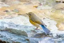 红胁蓝尾鸲俗名:蓝点冈子、蓝尾巴根子、蓝尾杰、蓝尾欧鸲。体型略小而喉白的鸲。特征为橘黄色两胁与白色腹部及臀成对比。雄鸟上体蓝色,眉纹白;亚成鸟及雌鸟褐色,尾蓝。…全部>>