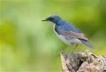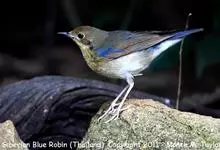 红胁蓝尾鸲俗名:蓝点冈子、蓝尾巴根子、蓝尾杰、蓝尾欧鸲。体型略小而喉白的鸲。特征为橘黄色两胁与白色腹部及臀成对比。雄鸟上体蓝色,眉纹白;亚成鸟及雌鸟褐色,尾蓝。…全部>>
