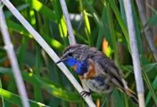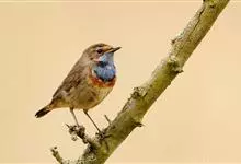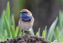 蓝点颏亦称“蓝喉歌鸲”,通称蓝靛颏儿。身体大小和麻雀相似,体长12-13厘米,体重17-18克。头部、上体主要为土褐色。眉纹白色。尾羽黑褐色,基部栗红色。颏部、喉部辉蓝色,下面有黑色横纹。下体白色。…全部>>