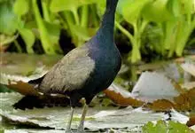 铜翅水雉雉鸻科铜翅水雉属的一种物种,是小型涉禽,体长28-31厘米。头颈、下体黑色,具金属色辉。从眼到颈有白色纵纹,背、内侧初级一飞羽橄榄铜绿色,尾下覆羽栗色。跗蹠的前后均有盾状鳞,趾、爪均甚长,…全部>>
