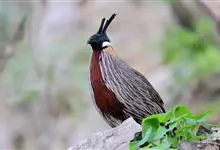 红腹角雉属于鸡形目雉科,雄鸟体羽及两翅主要为深栗红色,满布具黑缘的灰色眼状斑,下体灰斑大而色浅。雌鸟上体灰褐色,下体淡黄色,杂以黑、棕、白斑。全部>>