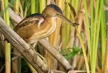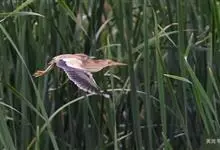 黄苇鳽是鹈形目鹭科苇鳽属鸟类。成鸟顶冠黑色;上体淡黄褐色,下体黄色,下颈基部和上胸具黑褐色块斑;黑色飞羽与黄白色覆羽成强烈对比;虹膜金黄色;眼先裸露呈黄绿色;喙峰黑褐色,…全部>>