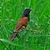 褐翅鸦鹃,是鹃形目鸦鹃科鸦鹃属的鸟类。褐翅鸦鹃的身体为黑色;头颈和胸带蓝紫色金属光泽并具黑亮的羽干纹,下胸至腹部泛金属绿光泽;两翼和肩部为棕栗色,外侧飞羽具暗色羽端,尾羽闪铜绿色光泽;虹膜赤红色,…全部>>