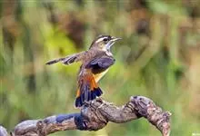 蓝点颏亦称“蓝喉歌鸲”,通称蓝靛颏儿。身体大小和麻雀相似,体长12-13厘米,体重17-18克。头部、上体主要为土褐色。眉纹白色。尾羽黑褐色,基部栗红色。颏部、喉部辉蓝色,下面有黑色横纹。下体白色。…全部>>