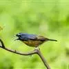 棕胸蓝姬鹟:属小型鸣禽,体长10-13厘米,体重6-10克,是一种体型很小的灰蓝及棕色鹟,雌雄羽色不同,雄鸟羽色艳丽,雌鸟羽色暗淡。雄鸟上体深蓝色,胸橙黄色,下腹灰白色。亚成鸟具褐色斑驳。…全部>>
