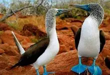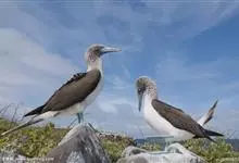 蓝脚鲣鸟,是一种大型的热带海鸟。平均身长80厘米,体重约1.5千克。雌性比雄性稍大些。最引人注目的是它们长着一对蓝色的大脚。嘴粗壮,长直而尖,近似圆锥形,上下嘴缘均呈锯齿状,喉囊发达,有贮存作用。翅…全部>>