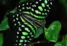 青带凤蝶Graphium sarpedon ,又名青凤蝶,是最普遍的中型凤蝶,飞行速度很快。青带凤蝶的翅膀中央有许多浅蓝色的斑点,很整齐地排列成一条直线。这些斑点由上而下逐渐变大,就像一条青色的带子。全部>>