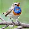 蓝点颏亦称“蓝喉歌鸲”,通称蓝靛颏儿。身体大小和麻雀相似,体长12-13厘米,体重17-18克。头部、上体主要为土褐色。眉纹白色。尾羽黑褐色,基部栗红色。颏部、喉部辉蓝色,下面有黑色横纹。下体白色。…全部>>