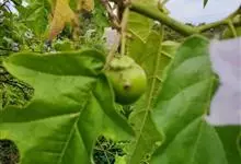 大花茄,别名木番茄,原产南美洲的玻利维亚至巴西。常绿大灌木或小乔木,株高3至5米,茎直立,小枝及叶柄具刚毛与皮刺,叶互生,叶片大、通常羽状半裂,叶面具刚毛状单毛。花腋生,花冠粉红色,…全部>>