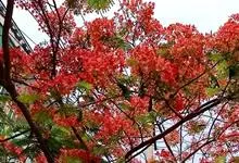 凤凰木 Raf.) ,别名火树、红花楹、凤凰花、火凤凰、金凤花、红楹,是豆科凤凰木属高大落叶乔木,树皮灰褐色,粗糙。二回偶数羽状复叶互生,矩圆形,两面均被柔毛。伞房式总状花序,花大,花瓣5枚,圆形,…全部>>