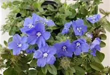蓝星花是旋花科、土丁桂属植物。株高可达45厘米,幼枝密生白色绵毛,伸长呈半蔓性或匍匐性。叶互生,椭圆形,全缘,纸质,叶背密被白色绵毛。花腋生,合瓣花,花冠蓝色,中心白星形,背面有白色星状条纹,…全部>>
