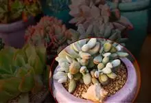 蓝豆是景天科、风车草属的多年生植物,多肉植物。植株叶片覆白粉,呈淡蓝色,在温差大、日照充足的环境下叶泛橙色或粉紫色。花五瓣,底色白,有红色斑纹。墨西哥多地有分布,…全部>>