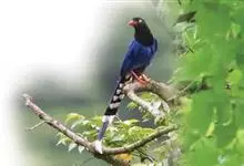 台湾蓝鹊:体长64至65厘米,翼展18至21厘米,尾长约40厘米,尾羽长占了总体长的三分之二。头、脸、颈、喉、胸都是黑色,黄色的眼珠包围黑色的瞳孔,鲜红色的鸟喙、双脚,…全部>>