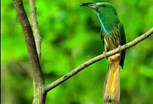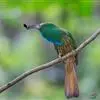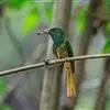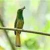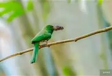 蓝须夜蜂虎是佛法僧目、蜂虎科的鸟类,体长约30厘米,是绿色林栖型蜂虎,蓝色的胸羽蓬松,嘴厚重而下弯。成鸟顶冠淡蓝,腹部棕黄带绿色纵纹。尾羽腹面黄褐。亚成鸟全身绿色。喉、胸部中央的羽甚长和亮色;该物种…全部>>
