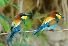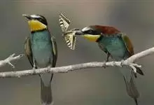 蓝颊蜂虎:是蜂虎科、蜂虎属的鸟类,共有2个亚种。体长27-33厘米,翼展46-49厘米,体重38-50克。嘴形细长而下弯,先端尖,…全部>>
