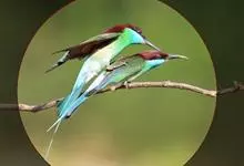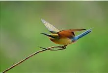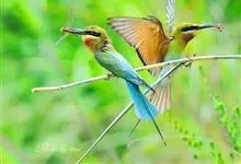 蓝颊蜂虎:是蜂虎科、蜂虎属的鸟类,共有2个亚种。体长27-33厘米,翼展46-49厘米,体重38-50克。嘴形细长而下弯,先端尖,…全部>>