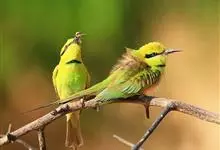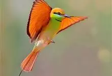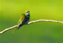 绿喉蜂虎是佛法僧目、蜂虎科的小型鸟类,共有9个亚种。身长22-25厘米,翼展29-30厘米,体重15-20克。喉绿色,额部、头顶至上背为锈红色,其余上体均为亮绿色。中央尾羽延长且端段狭细,…全部>>