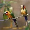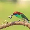 蓝颊蜂虎:是蜂虎科、蜂虎属的鸟类,共有2个亚种。体长27-33厘米,翼展46-49厘米,体重38-50克。嘴形细长而下弯,先端尖,…全部>>