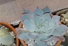 蓝石莲是景天科、拟石莲花属的多肉植物。茎部粗壮,成熟植株茎部木质化。叶片莲座型密集排列,株径不会很大,叶片相对较薄,常年绿色,表面布有白色粉末,中部凹陷,呈倒水滴状。叶尖较尖,叶缘光滑无褶皱,…全部>>