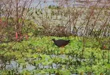 黑水鸡:是鹤形目、秧鸡科的鸟类,共有12个亚种。中型涉禽,体长24-35厘米。嘴长度适中,鼻孔狭长;头具额甲,后缘圆钝;嘴和额甲色彩鲜艳。翅圆形,第2枚初级飞羽最长,或第2枚和第3枚初级飞羽等长,…全部>>