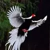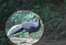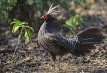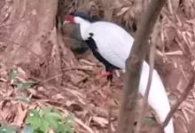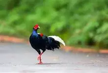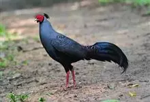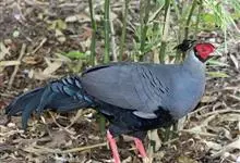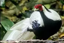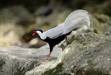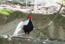 蓝鹇是雉科、鹇属一种大型雉类。体长50-80厘米。雄鸟头颈黑色,羽冠白色,有时杂以黑斑;脸红色,额部肉冠和脸部肉垂亦为红色;后颈和颈侧蓝黑色;肩赤红色;翅上覆羽及外侧次级飞羽黑色,…全部>>