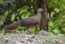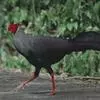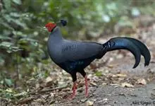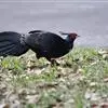 黑鹇是鸡形目雉科目鹇属鸟类,又称鸬雉、黑鸡。体型中等。雄鸟上体黑褐色,背羽具黑紫色金属光泽;头顶具黑羽冠;脸部裸皮呈红色,散生稀疏黑色纤羽;尾长而侧扁,中央两对尾羽红褐色,…全部>>