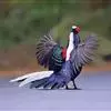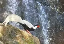 蓝鹇是雉科、鹇属一种大型雉类。体长50-80厘米。雄鸟头颈黑色,羽冠白色,有时杂以黑斑;脸红色,额部肉冠和脸部肉垂亦为红色;后颈和颈侧蓝黑色;肩赤红色;翅上覆羽及外侧次级飞羽黑色,…全部>>