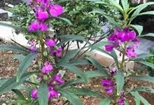 华凤仙:凤仙花科,凤仙花属一年生草本植物,高可达60厘米。茎纤细,无毛,叶对生,叶片硬纸质,稀倒卵形,上面绿色,被微糙毛,下面灰绿色,无毛,花较大,1-3朵簇生于叶腋,紫红色或白色;苞片线形,…全部>>
