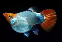 孔雀鱼,是鳉形目花鳉科花鳉属鱼类。孔雀鱼体形修长,其形态变化主要在尾鳍,常见的尾鳍形态有圆尾、尖尾、铲尾等。雌、雄鱼差别明显,雄鱼的大小只有雌鱼的一半左右,雄鱼体色丰富多彩,尾部形状千姿百态。…全部>>
