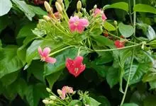 使君子 Jongkind)是使君子科、使君子属攀援灌木,叶对生,椭圆形,两面均被灰白色柔毛。穗状花序,倒挂下垂。花期夏秋。果有五棱,熟时黑色,种子白色。分布于印度、缅甸、菲律宾和中国。喜温润,深根性,…全部>>