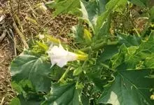 洋金花是茄科曼陀罗属植物,一年生草本植物,全株近于无毛。茎直立,圆柱形,高30~100cm,基部木质化,上部呈义状分枝。叶互生,上部的叶近于对生;叶柄长2~6cm,表面被疏短毛;叶片卵形、长卵形或心形,…全部>>