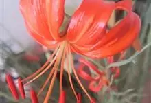 山丹是百合科百合属的多年生草本植物。鳞茎卵形或圆锥形,鳞片长圆形或长卵形,白色;叶散生茎中部,线形,边缘有乳头状突起;花单生或数朵成总状花序,花鲜红色,常无斑点,花被片反卷,…全部>>