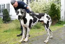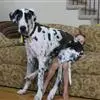 大丹犬原产于德国,历史上曾用做猎犬、护卫犬、斗犬、使役犬等,因其性格温顺、外貌优美,现今的发展方向主要是家庭用犬。该品种外貌高大、优美,体高与体长相当。公犬体高在76cm以上,母犬体高在71cm以上,…全部>>
