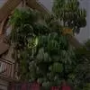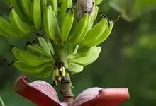 香蕉’),芭蕉科芭蕉属多年生草本植物,植株丛生,有匐匍茎;假茎浓绿有黑色斑点;叶片长圆形,上面为深绿色,无白粉,下面浅绿色;花朵为乳白色或淡紫色;果实呈弯曲的弓状,有棱,果皮为青绿色,…全部>>