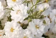 白蔷薇:直立灌木,高约2米;小枝有不等钩状皮刺,有时混有刺毛。小叶通常5,稀7,宽椭圆形或卵形,边缘有单锯齿,下面被毛,托叶宽,半边有锯齿。花排列成伞房状,直径6-8厘米;萼筒光滑,萼片卵状披针形,…全部>>