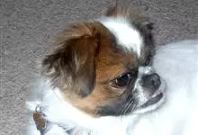 日本狆是极小型犬;被毛长而丰厚,不弯曲;毛色为白色底,带黑色或栗色斑块,斑块颜色越艳越好;斑块以在耳、身、面、尾根左右对称者为佳;头较大而圆,头骨平坦;吻短,鼻尖缩至两眼之间,几乎与眼同齐;眼大而凸出,…全部>>