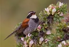 藏鹀:属小型鸣禽。喙为圆锥形,与雀科的鸟类相比较为细弱,上下喙边缘不紧密切合而微向内弯,因而切合线中略有缝隙;体羽似麻雀,此鹀以具有特殊的鲜红栗色背部,及上胸的黑带与下胸的纯灰色等形态特征,…全部>>